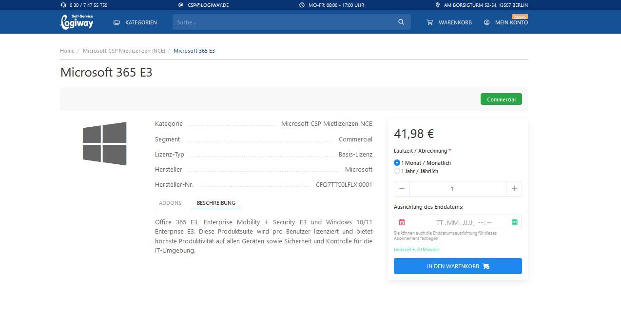 Bestellen Sie CSP-Kauflizenzen und Subscriptions direkt im Logiway Self-Service-Portal. Sie bezahlen zu Ihren üblichen Bedingungen bei Logiway und benötigen keine Kreditkarte.