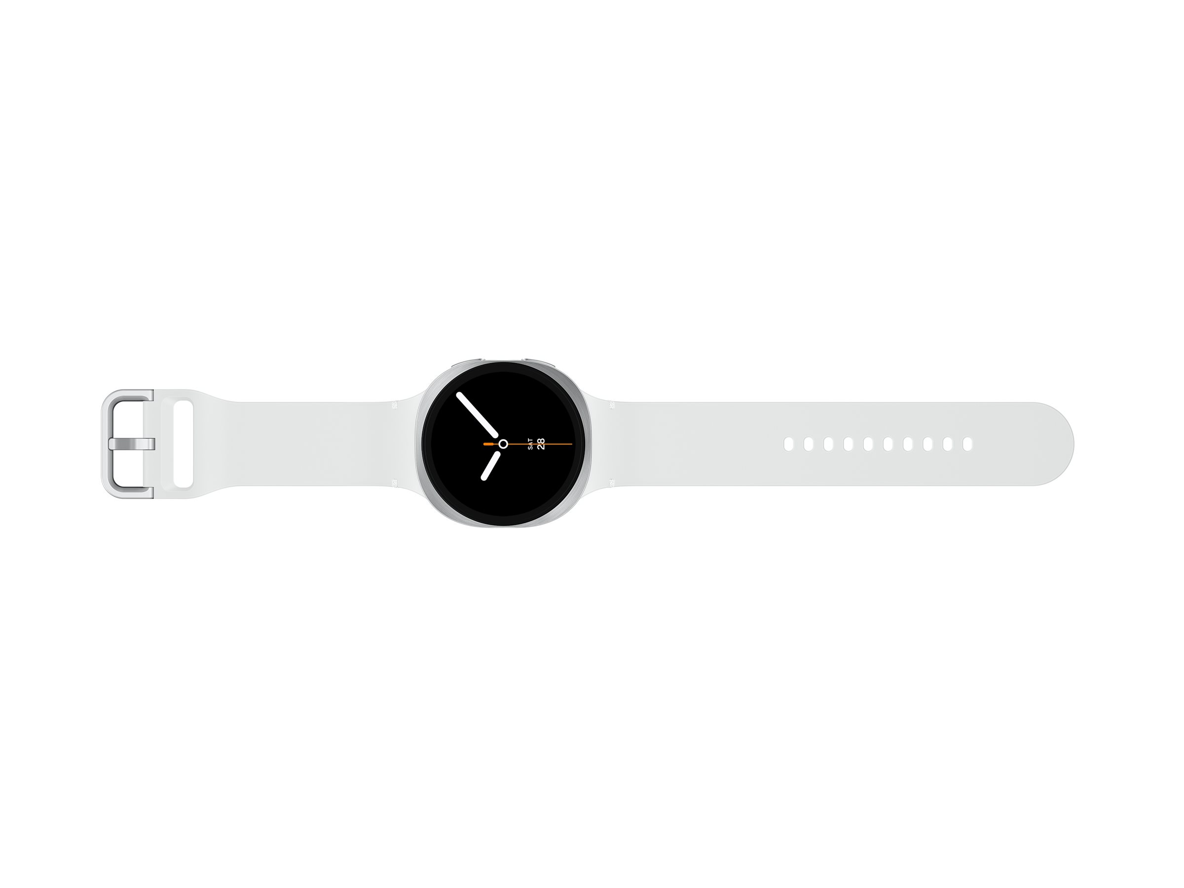 Samsung Galaxy Watch8 - 44 mm - silber - intelligente Uhr mit Sportband - Gummi - weiß - Bandgröße: M/L - Anzeige 3.7 cm (1.47") - 32 GB - NFC, Bluetooth, Wi-Fi, LTE - 4G - 34 g
